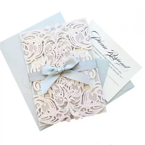 Custom Laser Cut 3D Rose Hollow Out Folding Wedding Invitations Envelopes with Greeting Card