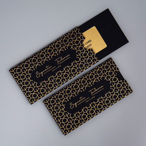 Envelope Manufacturers Custom Black Gold Foil Full UV Printing Gift Card Holders Sleeves Packaging Envelopes